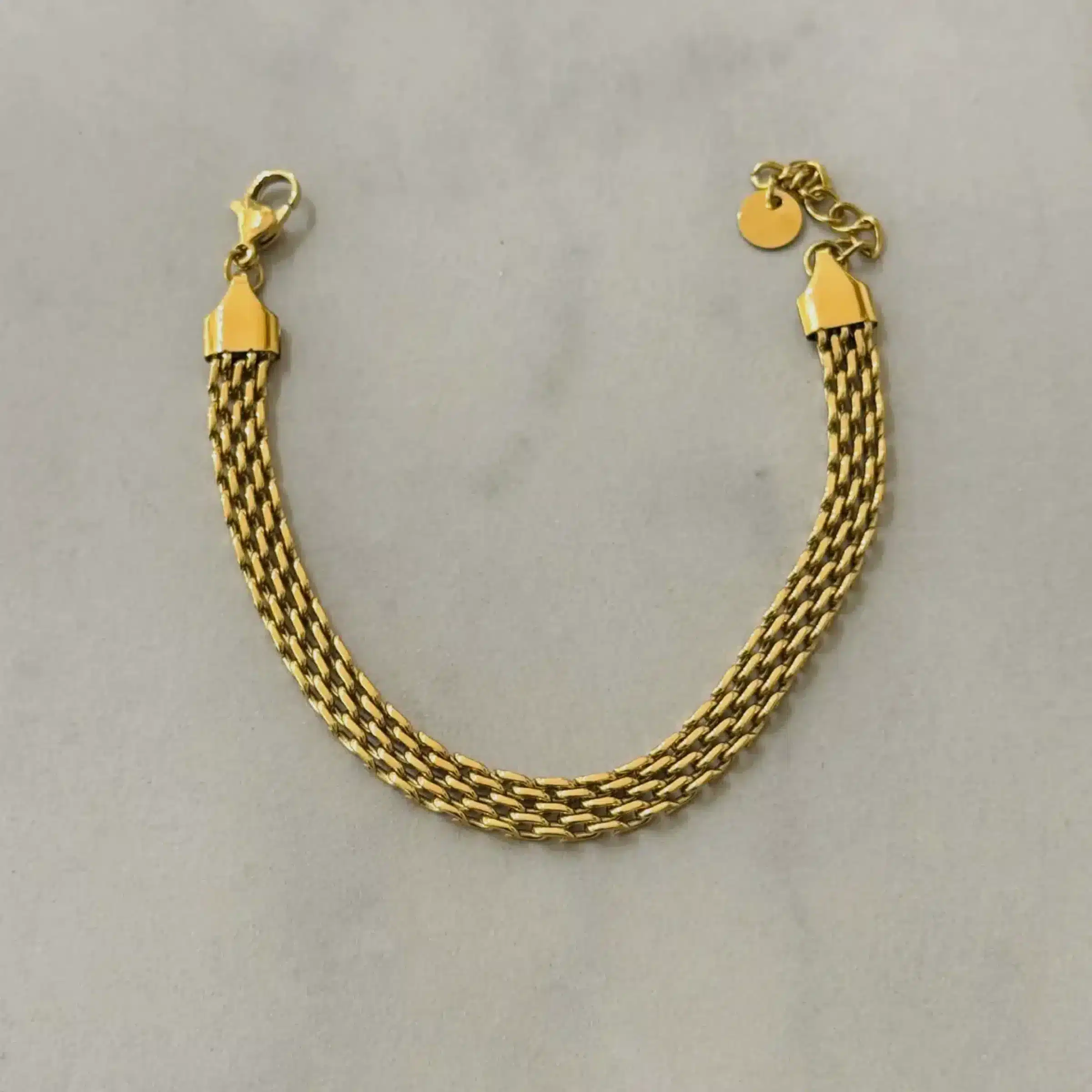 Stoer en stijlvol komen samen in de Armand Mesh Armband van Cassette. Met zijn robuuste mesh-structuur en gouden glans is dit een echte statement piece – krachtig, maar verfijnd.