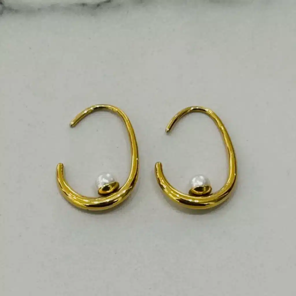 Strak, glanzend en moeiteloos modern. De Nils oorbellen in goud met wit stralen tijdloze elegantie uit – perfect voor een minimalistische bruid, of als verfijnd accent bij elke gelegenheid.