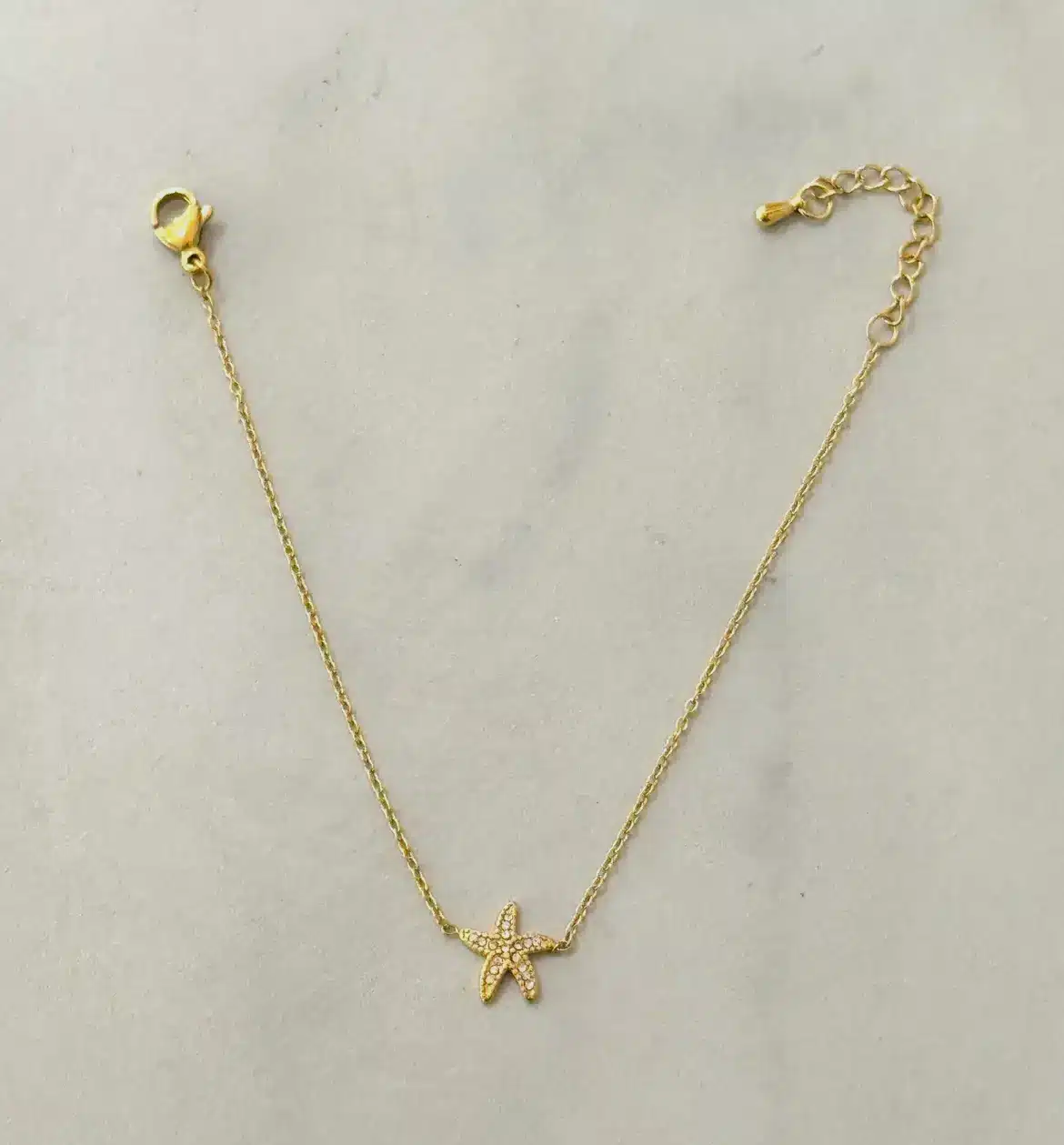 Een subtiele knipoog naar de zee. De Minimal Zeester Armband combineert glanzend goud met fonkelende witte zirkonia’s in de vorm van een delicate zeester.