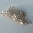 Geef je bruidslook een tijdloze touch doormiddel van deze een mooie haaraccessoire (14 cm) met parels en subtiele witte bloemen!