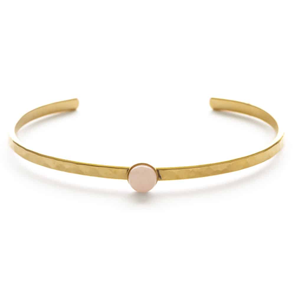 Deze unieke armband is gemaakt van messing verguld met 14K goud met als eyecatcher de “Lovestone”, de rozenkwarts edelsteen, perfect in combinatie met de bijpassende oorbellen & ketting.