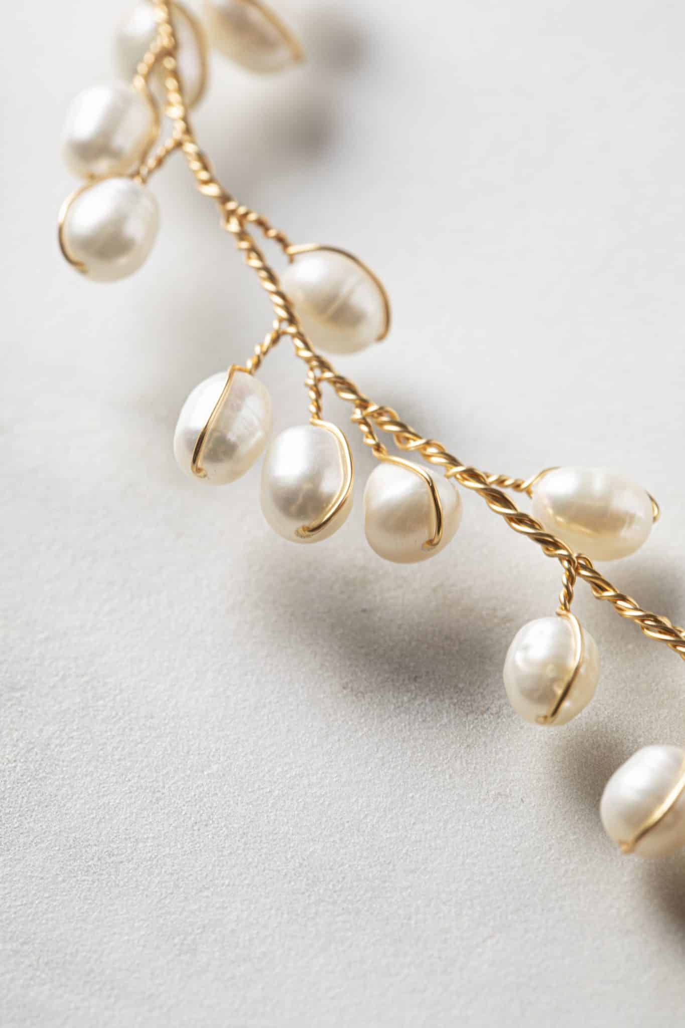 Dit haaraccessoire is handgemaakt en bewerkt met hoge kwaliteit zoetwaterparels. Het design en de combinatie van het goudkleurige draad en de parels in dit haarsieraad zorgen voor een romantische bohemian uitstraling.