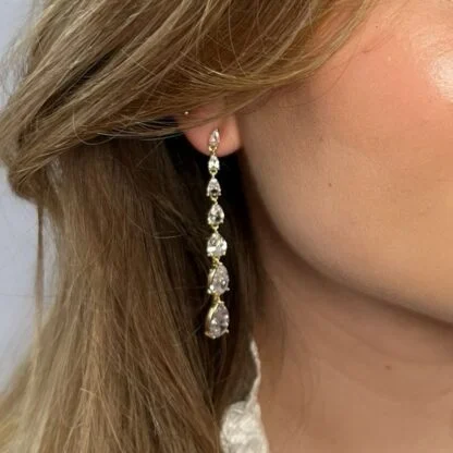 De prachtige, elegante Ella oorbellen zijn voorzien van fonkelende Zirkonia steentjes en stralen een vintage charme uit. Perfect voor wie op zoek is naar een opvallend en tijdloos sieraad. Ook verkrijgbaar in zilver. Lengte: 6.5 cm