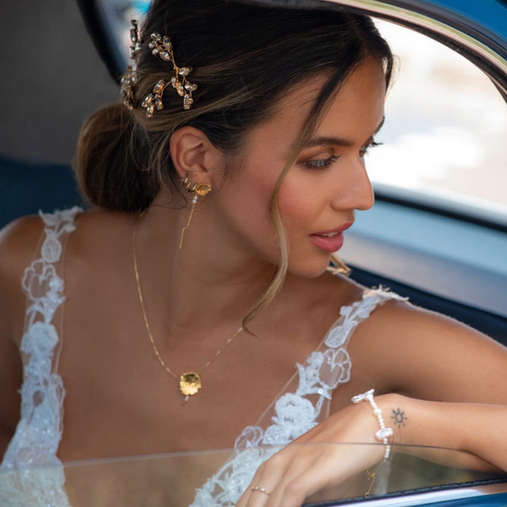 Geïnspireerd door deze wedding destinations ontwerpt Sally-Jane moderne en bohemian bruidssieraden. Haar ontwerpen bevatten rijke materialen zoals bergkristal, zoetwaterparels en edelstenen, ze zijn stuk voor stuk handgemaakt. Perfect voor de bruid die op zoek is naar een bruidsaccessoire dat past bij haar unieke destination wedding!