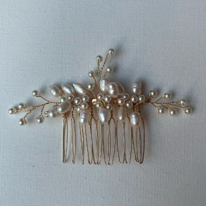 Deze subtiele haaraccessoire bestaat uit een verzameling zoetwaterparels. Door de tijdloze subtiele afwerking past dit haarsieraad prachtig bij elke trouwjurk!