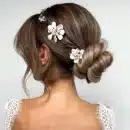 Ontdek de elegante schoonheid van onze Lilly Hairclip, verfraaid met weelderige barokke parels en sprankelende strass-details. Met zorg ontworpen om te schitteren, de perfecte finishing touch voor een bruidslook die zowel klassiek als eigentijds is. Voeg een vleugje vintage toe aan je trouwdag met deze adembenemende haaraccessoire.