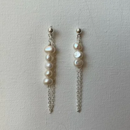 Maak een statement met onze silver-plated oorbellen van messing, afgewerkt met zoetwaterparels. Lange oorbellen die stoer en toch elegant zijn, perfect om jouw look een unieke en moderne touch te geven. Ook verkrijgbaar in goud. Lengte:6cm