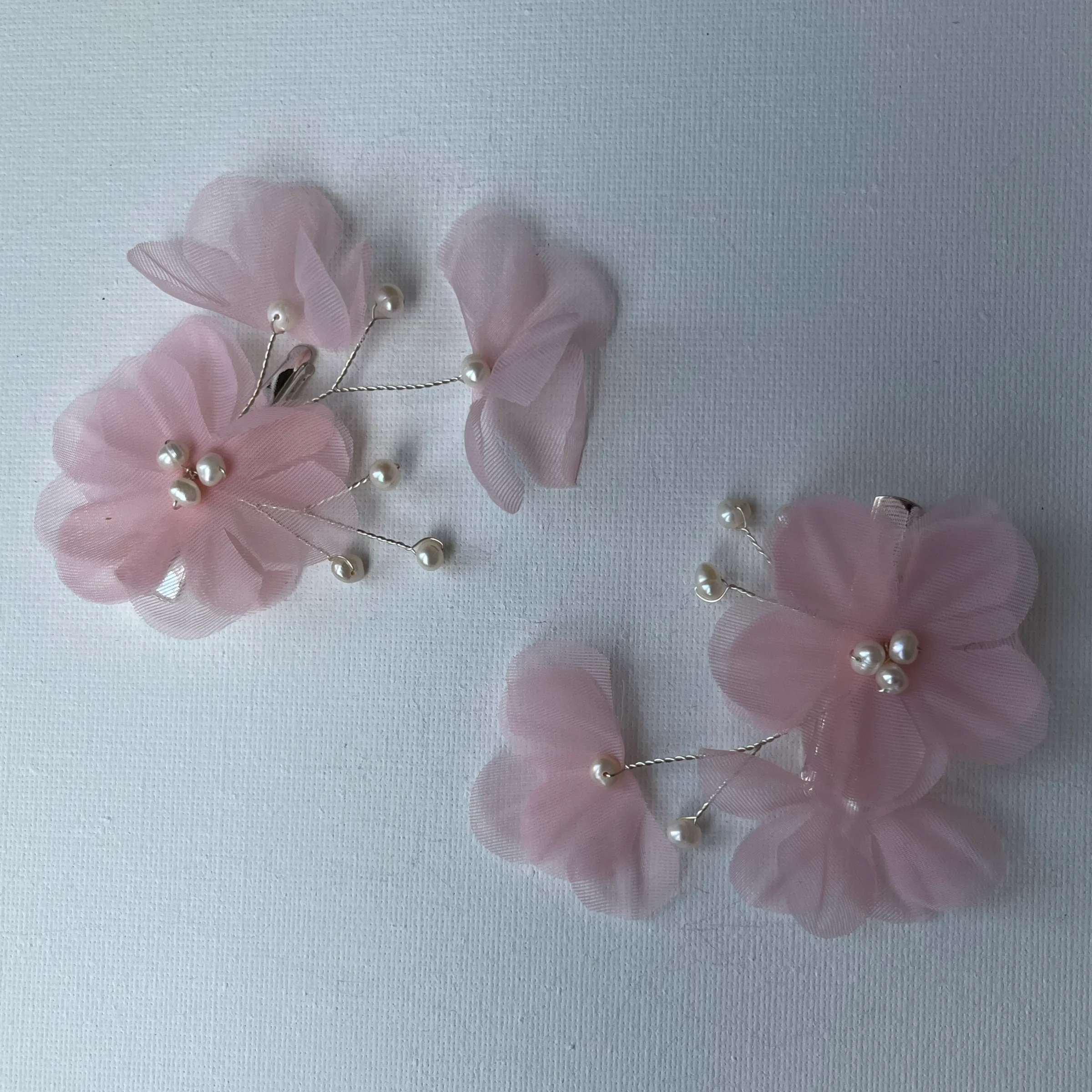De Rose Hairclips (set van 2) van SallyJaneBridal zijn gemaakt van fijne stoffen bloemen en afgewerkt met kleine zoetwaterparels, wat de haaraccessoires een elegante en romantische uitstraling geeft.
