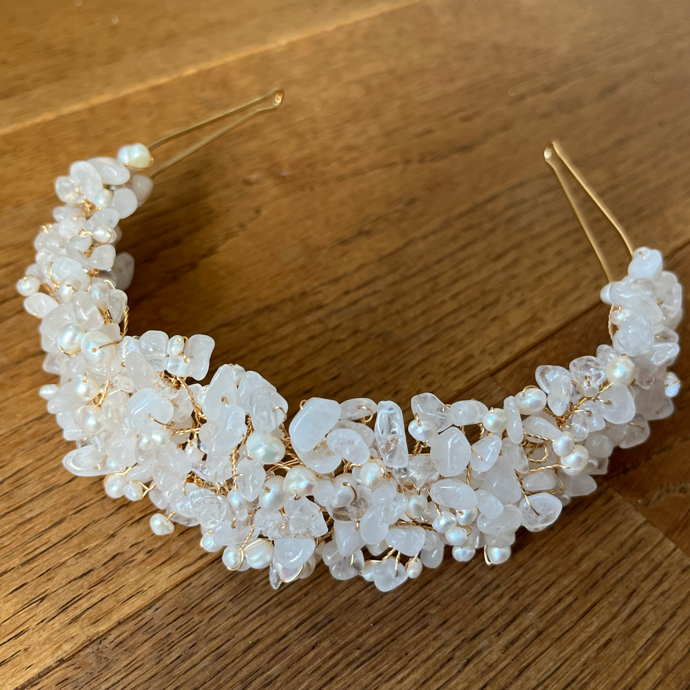 Op zoek naar het perfecte haaraccessoire om jouw bruidslook te complementeren? Ontdek onze prachtige diadeem: Selena Tiara Gold met de tijdloze elegantie van zoetwaterparels en de subtiele schittering van doorzichtige milky edelsteentjes. Een ware eyecatcher, ontworpen om jouw bruidsstijl onvergetelijk te maken.